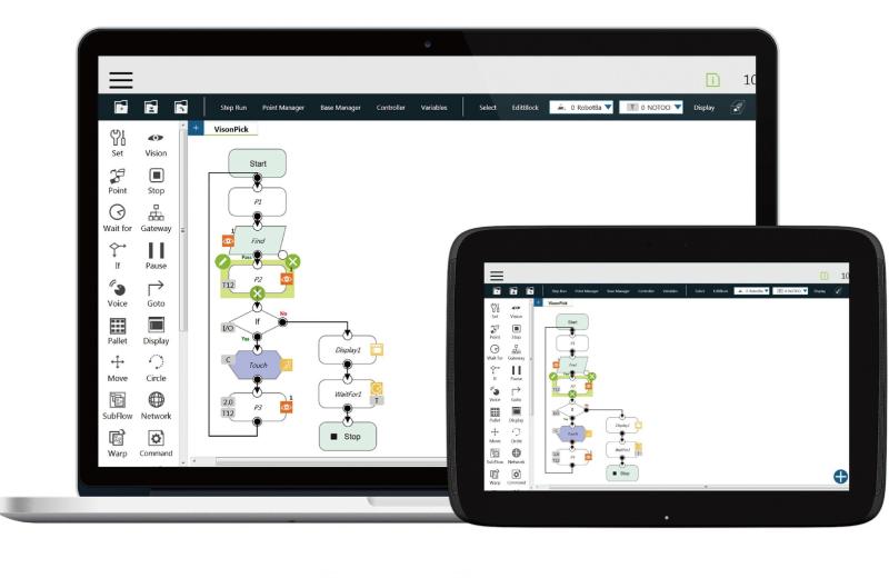 Programming of the TM AI cobot can be done by a simple-to-use user interface. You can guide the TM AI cobot by hand and select the required positions. All selected points are visual in an all-graphic flow chart based on HMI. It only takes 5 minutes to achieve a pick and place task.